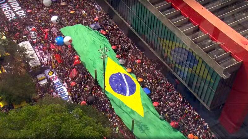 - Sai bandeirão dos EUA, entra bandeirão do Brasil: manifestantes fazem protesto ao Masp, na Avenida Paulista, contra a PEC da Blindagem e o Projeto de Anistia. Foto: Reprodução/TV Globo