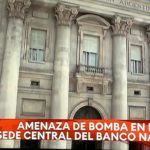 A equipe anti-bombas da polícia argentina encontra-se na sede do Banco de la Nación, em Buenos Aires, devido a uma...