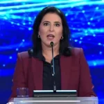 Pesquisa qualitativa realizada pelo Datafolha com 60 pessoas em tempo real diz que a candidata à Presidência pelo MDB, a...