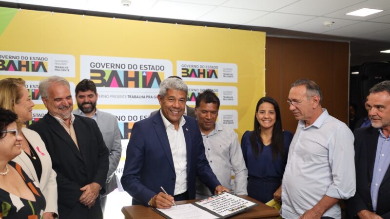 - Na foto, governador Jerônimo Rodrigues assina convênios com quatro municípios baianos para fortalecer a rede municipal de ensino. Foto: Wuiga Rubini/GOVBA