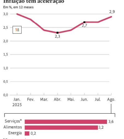 Em agosto, enquanto a inflação geral anual foi de 2,9%, ela rondava 3,6% nos serviços (exceto energia) e 3,2% em alimentos. A meta perseguida pelo Fed, o banco central americano, é 2% ao ano.