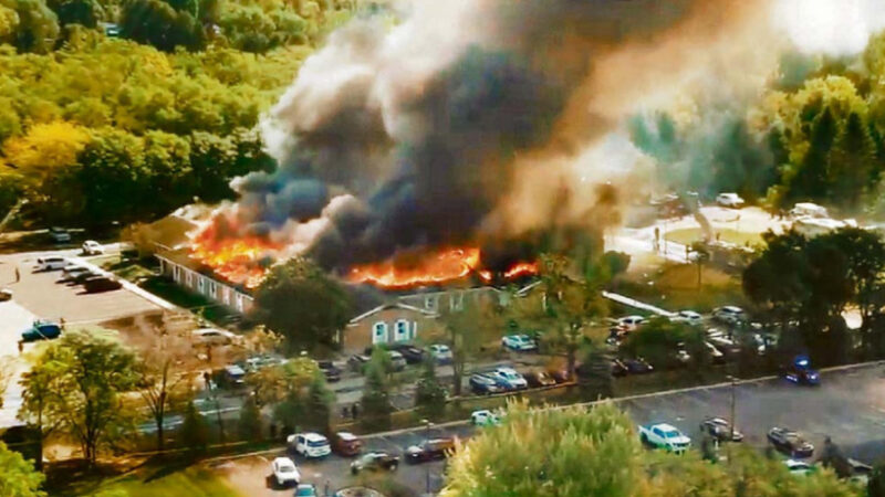 A polícia afirmou que ainda não identificou um motivo para o incêndio ou o tiroteio. Investigadores estão revistando a residência do suspeito em Burton.