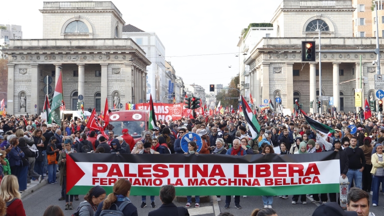 - A procissão milanesa nos bastiões da Porta Venezia. São esperadas mais de um milhão de pessoas em Roma neste sábado em defesa de Gaza e contra o massare palestino. Corriere Della Sera/Reprodução
