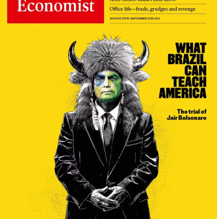 28 de agosto de 2025 10:09O ex-presidente do Brasil Jair Bolsonaro está na capa da revista britânica “The Economist” desta semana. A publicação, que chega às bancas nesta quinta-feira (28), dá destaque ao julgamento do brasileiro, que começa na terça-feira que vem, no dia 2 de setembro, e ao divulgar a nova edição nas redes sociais, afirma: “O Brasil oferece uma lição de democracia para uma América que está se tornando mais corrupta, protecionista e autoritária”.