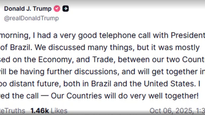 Trump diz que conversa com Lula foi ‘muito boa’ – registra até nas redes sociais – e fala que viajará para o Brasil ‘em algum momento’
