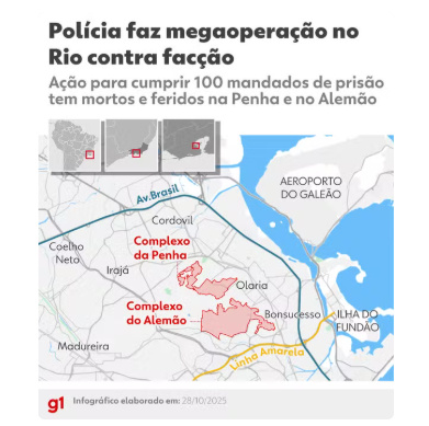 Até a última atualização desta reportagem, a ação ainda estava em andamento, com relatos de mais baleados. Trata-se de mais uma etapa da Operação Contenção, uma iniciativa permanente do governo do estado de combate ao avanço do CV por territórios fluminenses.