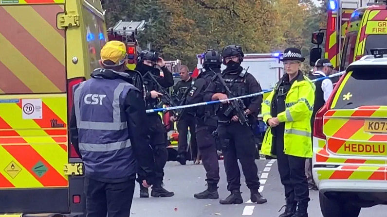 - Policiais no local de ataque perto de Sinagoga na Inglaterra. Reuters
