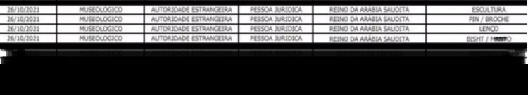 Consulta ao acervo presidencial demonstra que na data foram agregados a ele apenas 4 itens como presentes da Arábia Saudita: um manto, um lenço, uma escultura e um broche.