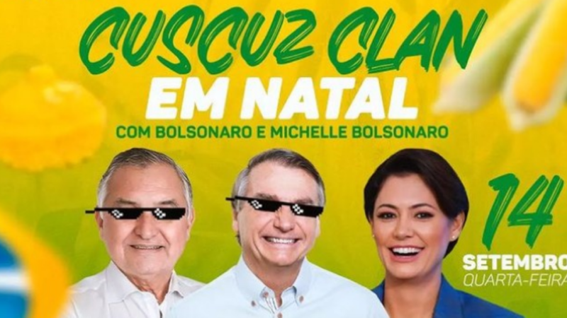 A suposta piada chama o evento de Cuscuz Clan, uma referência ao prato nordestino. O candidato pede para que os seguidores vistam verde e amarelo e lutem contra a fraude nas urnas. “Não Vote Nulo ou se abstenha, o Bem contra o Mal tem que se posicionar para o Bem do Povo e do Brasil, meu voto é no Capitão do Povo, até pq não voto em Ladrão e vou fazer tbm a do só voto em Candidatos que apóiam #Bolsonaro2022”.