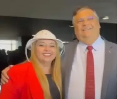 O material em questão exibe a humorista ao lado do ministro Flávio Dino. Bolsonaristas disseminaram a fake news, afirmando que se tratava de uma mulher casada com um chefe do Comando Vermelho.