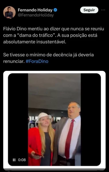 “A mentira de hoje, continuando a canalhice de ontem, é que essa senhora do vídeo é uma criminosa com quem eu teria me reunido, o que é absolutamente falso, como afirmo desde ontem. Esses bandidos inventam essas calúnias para aglutinar gente da mesma espécie, a fim de praticar o mal. Vejam o desmentido da atriz e humorista, que recebe a minha solidariedade pessoal”, escreveu Dino.