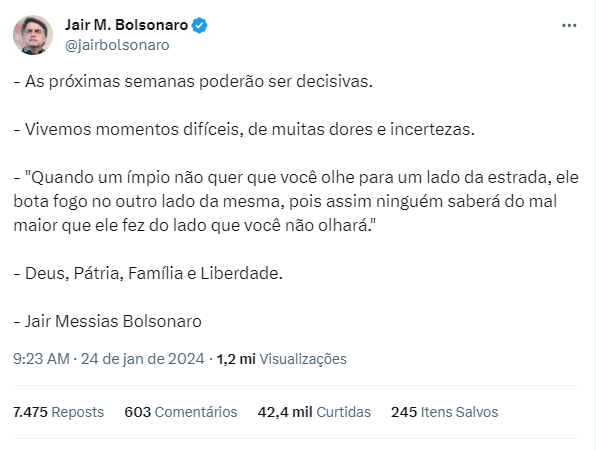 As informações também reforçam a suspeita de que houve vazamento da operação. Em mensagem cifrada nas redes no dia 24, Bolsonaro havia dito que os seus aliados deveriam apoiá-lo porque as próximas semanas seriam “decisivas”.