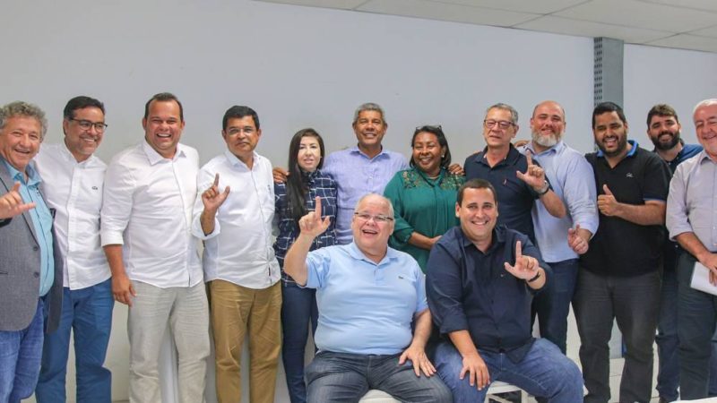 8 de novembro de 2022 09:51O governador eleito, Jerônimo Rodrigues, e o vice-governador eleito, Geraldo Júnior, se reuniram na manhã desta segunda-feira (07) com presidentes e lideranças do Partido dos Trabalhadores da Bahia, PSB, PSD, PCdoB, PV, MDB, PSOL e Rede Sustentabilidade para agradecer o apoio das legendas, tratar sobre a transição e sobre os planos para os primeiros 100 dias de governo. Além de Jerônimo e Geraldo, estavam presentes os presidentes do PT Bahia, Éden Valadares; do PCdoB, Davidson Magalhães, do PV, Ivanilson Gomes, do PSOl, Elze Faccnethi; da Rede, Iaraci Dias e do PSB, Lídice da Mata; além do presidente de honra do MDB, Lúcio Vieira Lima (MDB), e de Marcus Cavalcanti, representante do PSD.