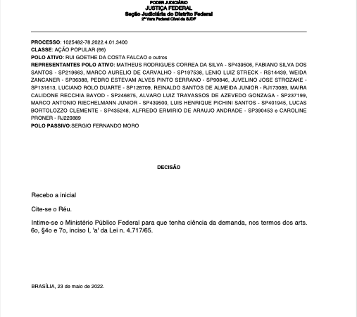 Desta vez, na ação popular que deputados petistas protocolaram na Justiça Federal em abril, acusando-o de utilizar a operação para perseguir e desmoralizar Lula e Dilma Rousseff e contribuir para eleger Jair Bolsonaro, de quem ele depois virou ministro da Justiça.
