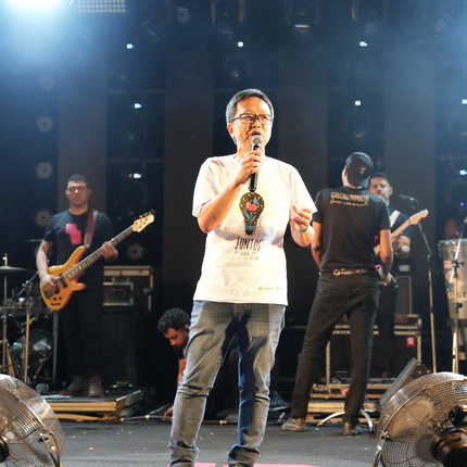 Tomado por grande emoção, ao abrir o show, o presidente da Fenae, Sergio Takemoto, parabenizou os empregados e empregadas da Caixa, que se dedicaram muito não só no atendimento à população, no período pandêmico, quando se mostraram imprescindíveis, mas também na revelação de seus talentos.