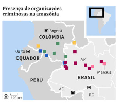 O estudo é da Abin em parceria com a DNI (Direção Nacional de Inteligência) da Colômbia e diz que narcotráfico, mineração ilegal de ouro e tráfico humano de migrantes são as principais ameaças para a segurança humana e ambiental da região. É o primeiro documento público conjunto entre serviços de inteligência sul-americanos sobre esses temas.