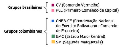Na chamada Amazônia Compartilhada, facções criminosas como o CV (Comando Vermelho) e o PCC (Primeiro Comando da Capital) mantêm negócios com grupos colombianos para levar as drogas para serem consumidas em outros locais do Brasil e para escoamento da produção com destino à Europa e à África.